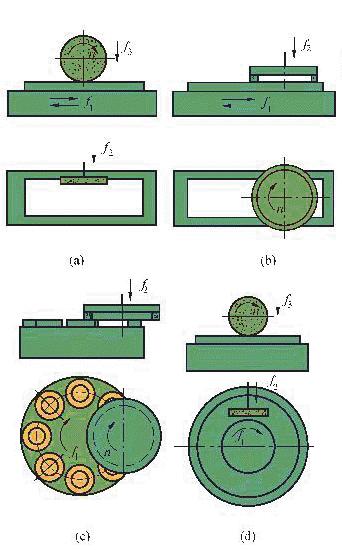 。1)臥軸矩臺(tái)式平面圓臺(tái)磨床(圖1a ) 在這種機(jī)床中,工件由矩形電磁工作臺(tái)吸住。砂輪作旋轉(zhuǎn)主運(yùn)動(dòng)n,工作臺(tái)作縱向往復(fù)運(yùn)動(dòng)f1 ,砂輪架作間歇的豎直切入運(yùn)動(dòng)f3和橫向進(jìn)給運(yùn)動(dòng)f2 。